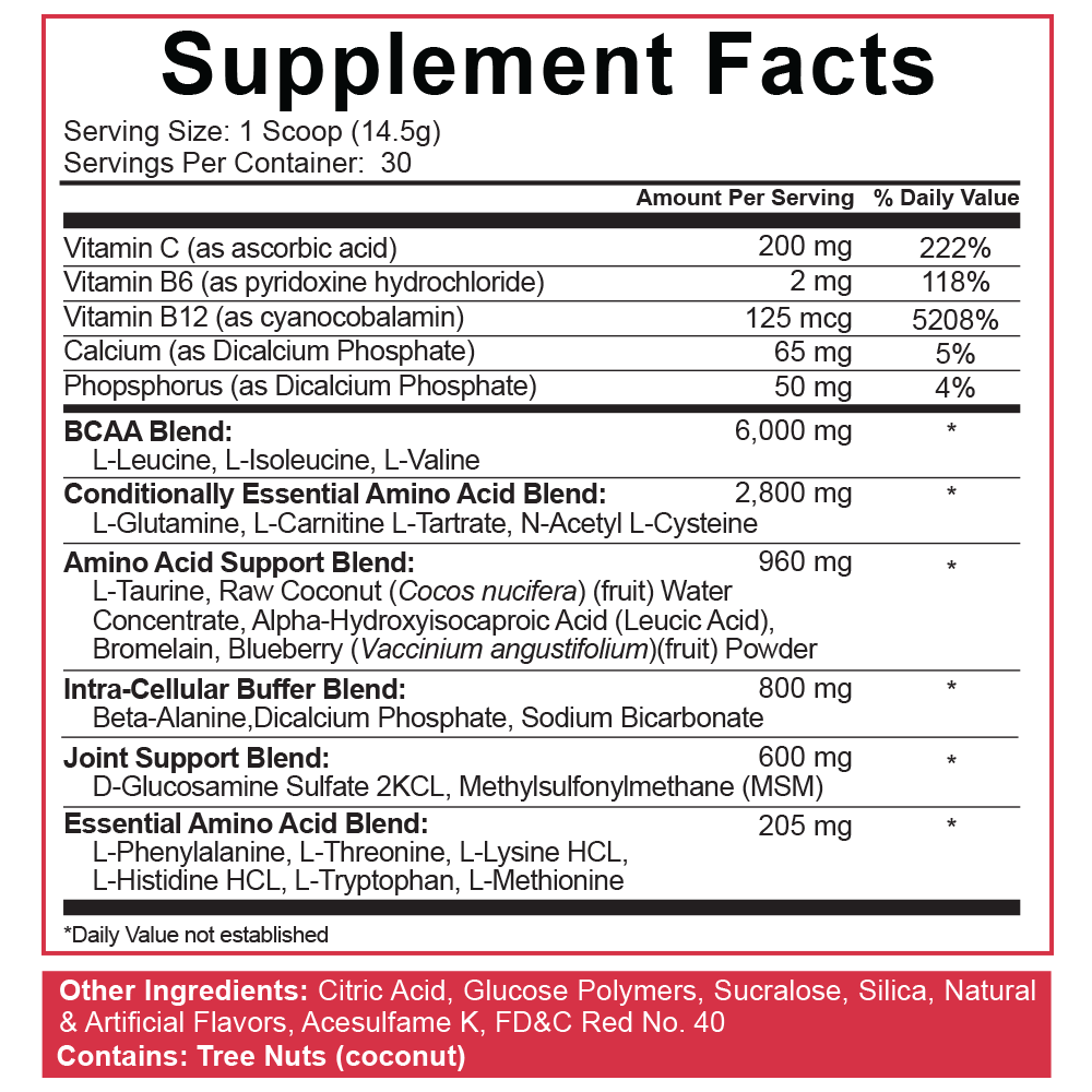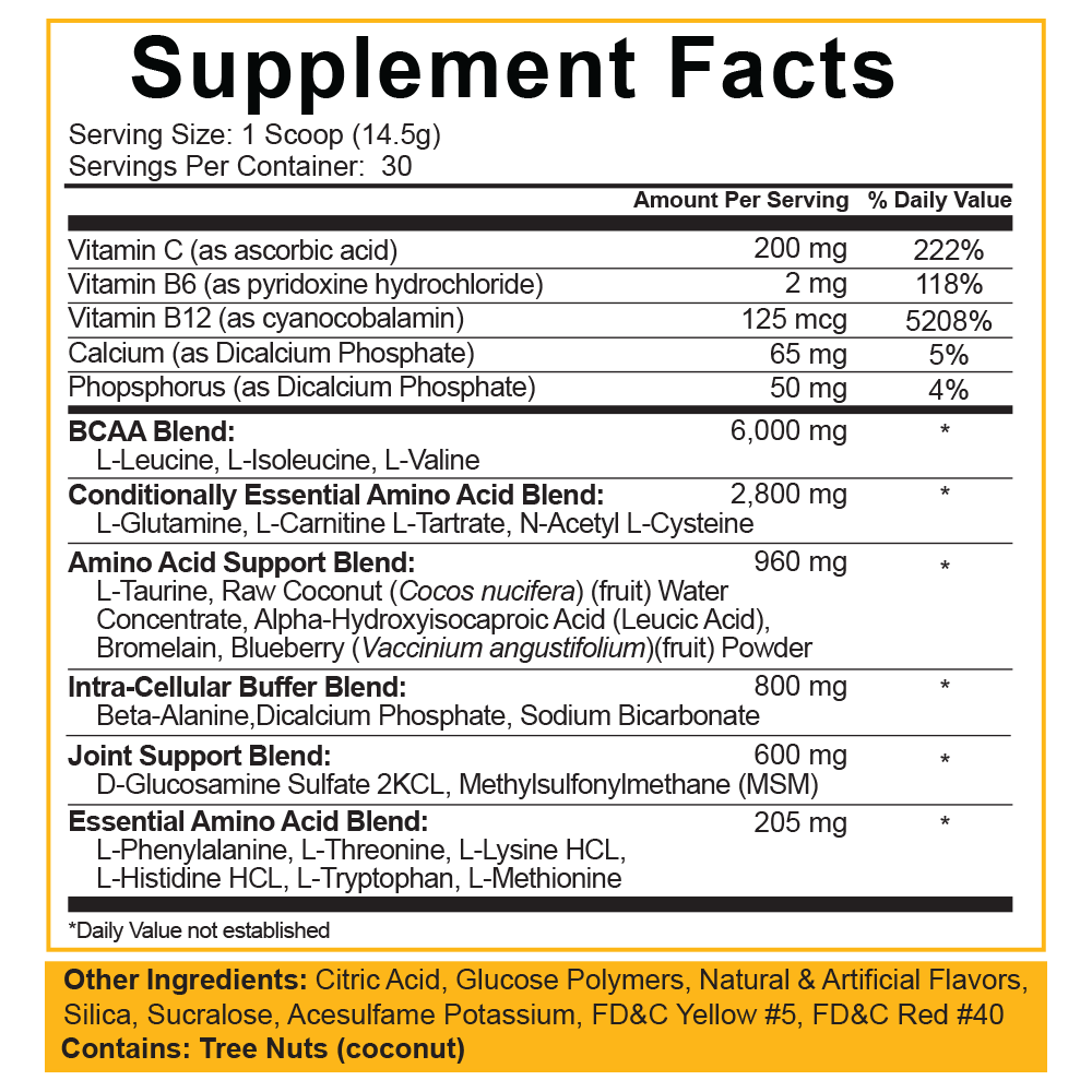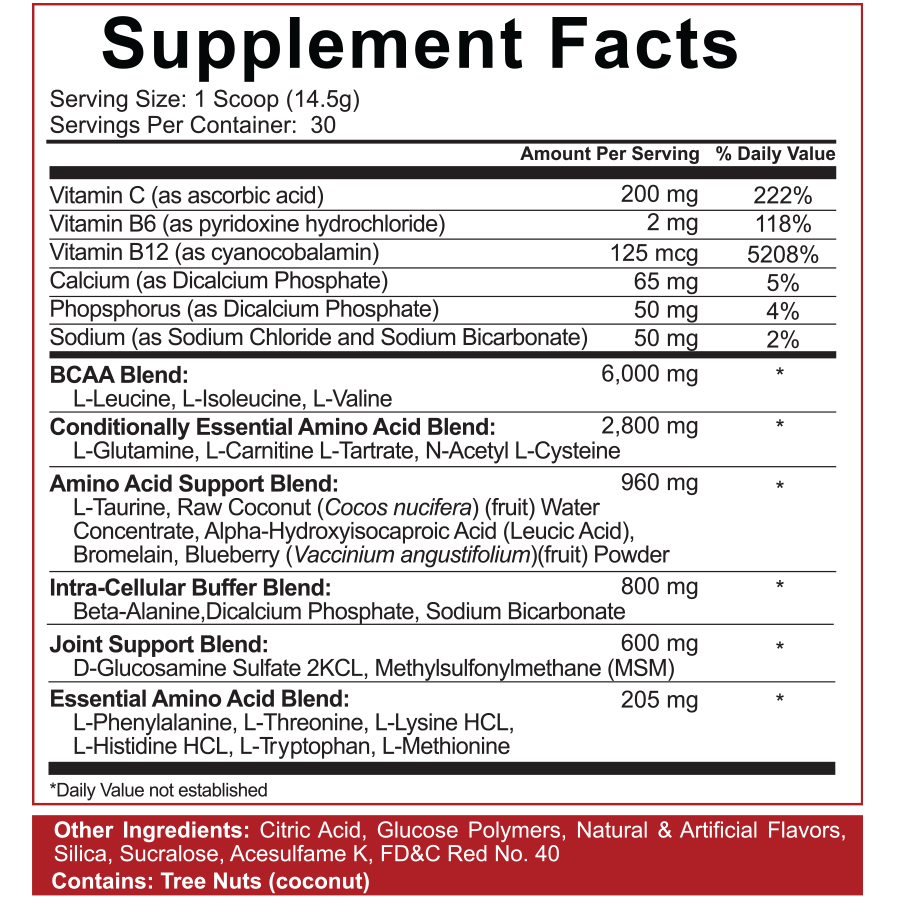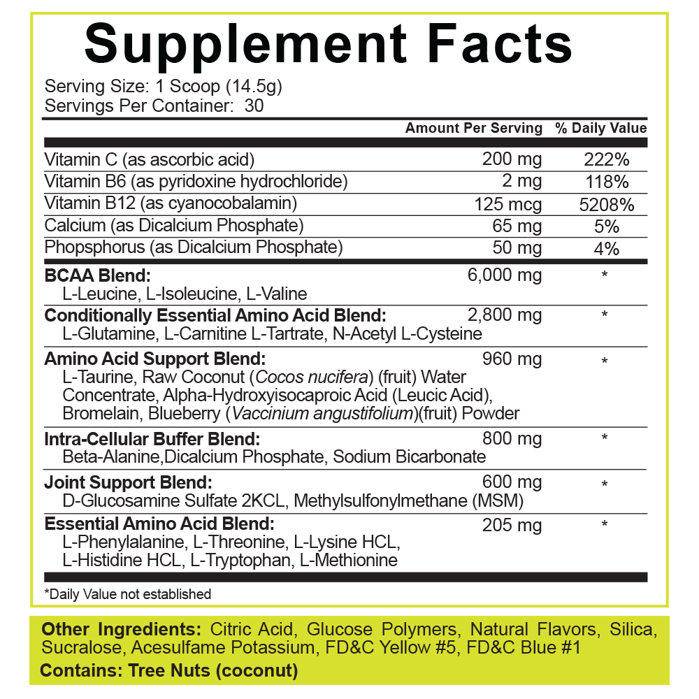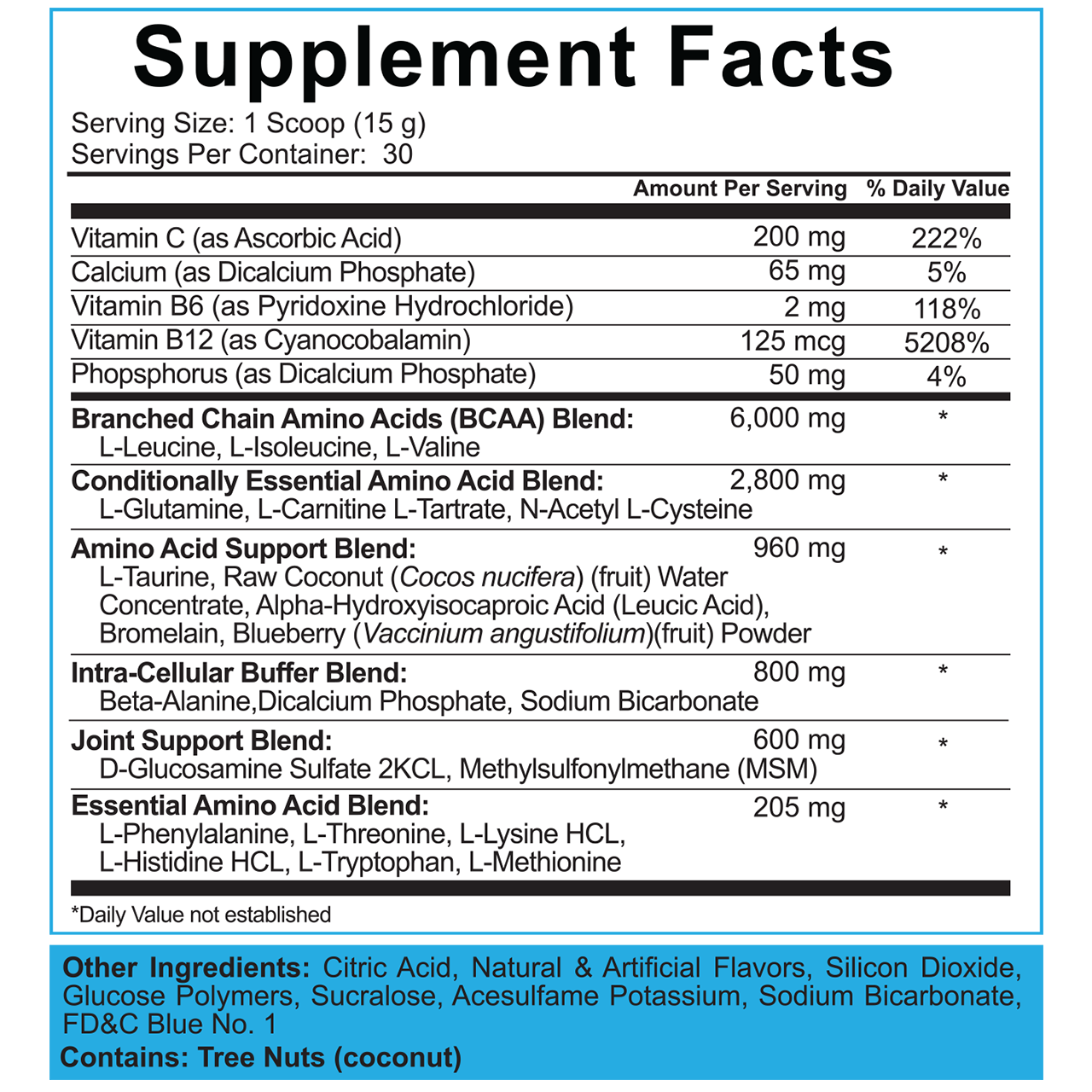 Amino Acid Support Blend – L-Taurine, Raw Coconut Water Concentrate, HICA, Bromelain, Blueberry Fruit Powder – 960 mg