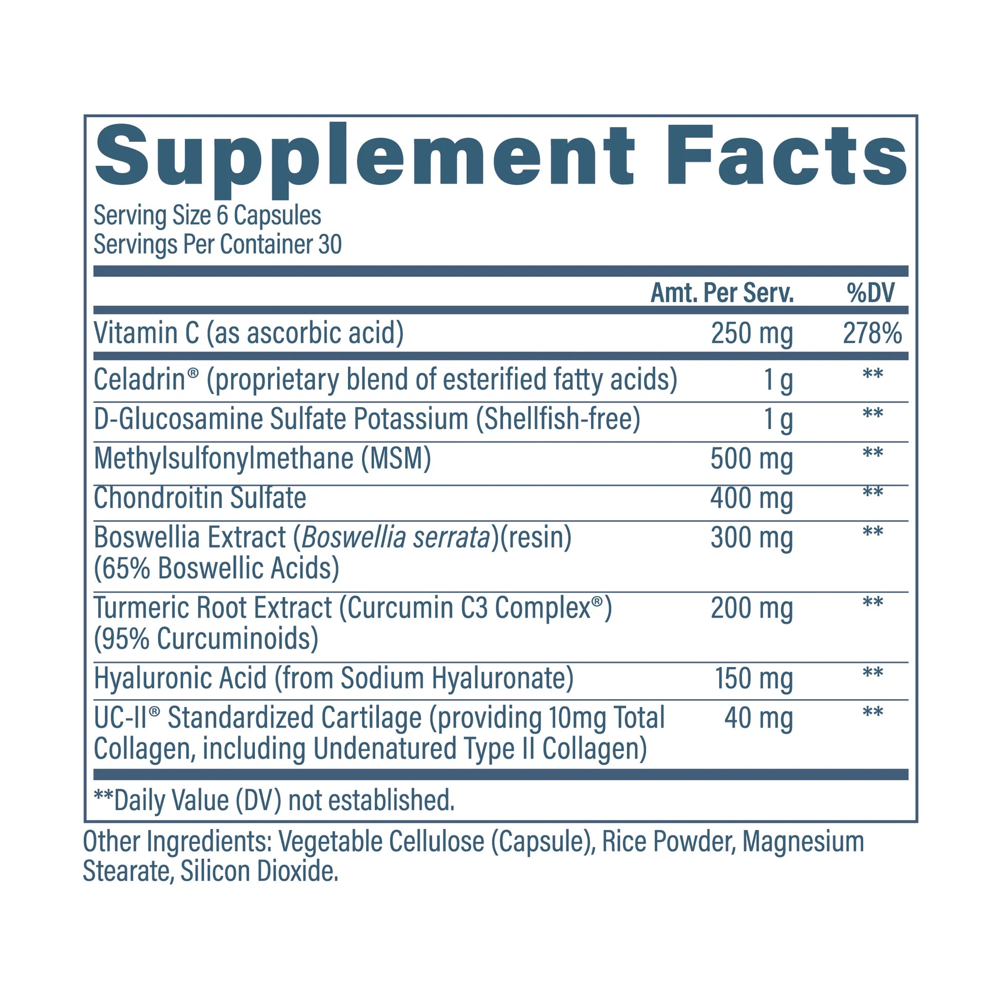 Revive Joint Support is designed to provide comprehensive support for cartilage repair, lubrication, and inflammation reduction. Powered by UC-II, it aids in rebuilding damaged cartilage, promoting resilient joints. Hyaluronic Acid helps keep your joints hydrated, acting as a natural shock absorber for smoother movement. To reduce joint pain, Boswellia and Celadrin work together to calm inflammation. Additionally, the formula includes Glucosamine, MSM, and Chondroitin to ensure optimal joint function and long-term support.*