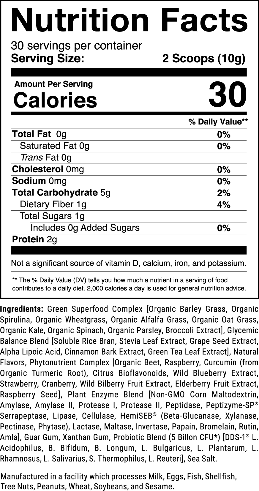 In fact, Opti-Greens 50 includes low-temperature processed, 100% organic grasses, non-GMO, non-synthetic botanical superfoods, phytonutrients, digestive enzymes, and probiotics to create the most complete greens powder on the market.