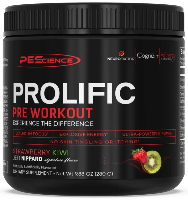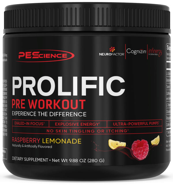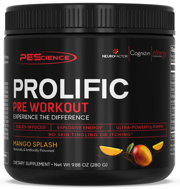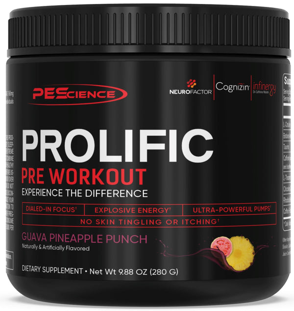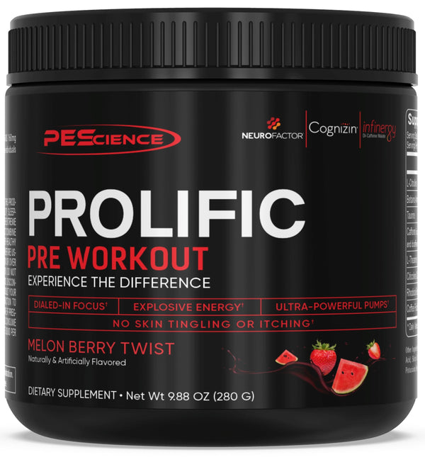 Prolific is the pre-workout powerhouse that covers the full spectrum of an ultimate workout experience: Powerful energy and focus + long lasting pumps.