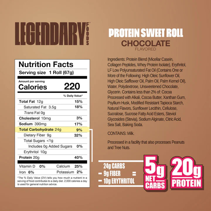 Our Protein Sweet Roll takes the iconic favorite, and infuses the Legendary nutrition profile that we demand. We're talking all the flavor and then some. 20g protein, 5g net carbs, zero sugar, and proudly gluten-free.