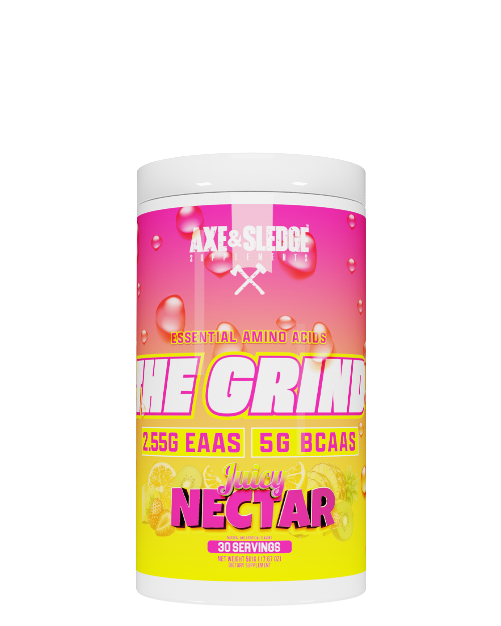 THE GRIND IS OUR PREMIUM EAA, BCAA, + HYDRATION FORMULA THAT’S DESIGNED TO BE USED BEFORE, DURING, AND/OR AFTER TRAINING TO ENHANCE RECOVERY, HYDRATION, AND PERFORMANCE. INSTEAD OF JUST CREATING A STANDARD BRANCHED-CHAIN AMINO ACID POWDER LIKE MANY OF OUR COMPETITORS, WE DECIDED TO FORMULATE THE ULTIMATE INTRA-WORKOUT SUPPLEMENT!