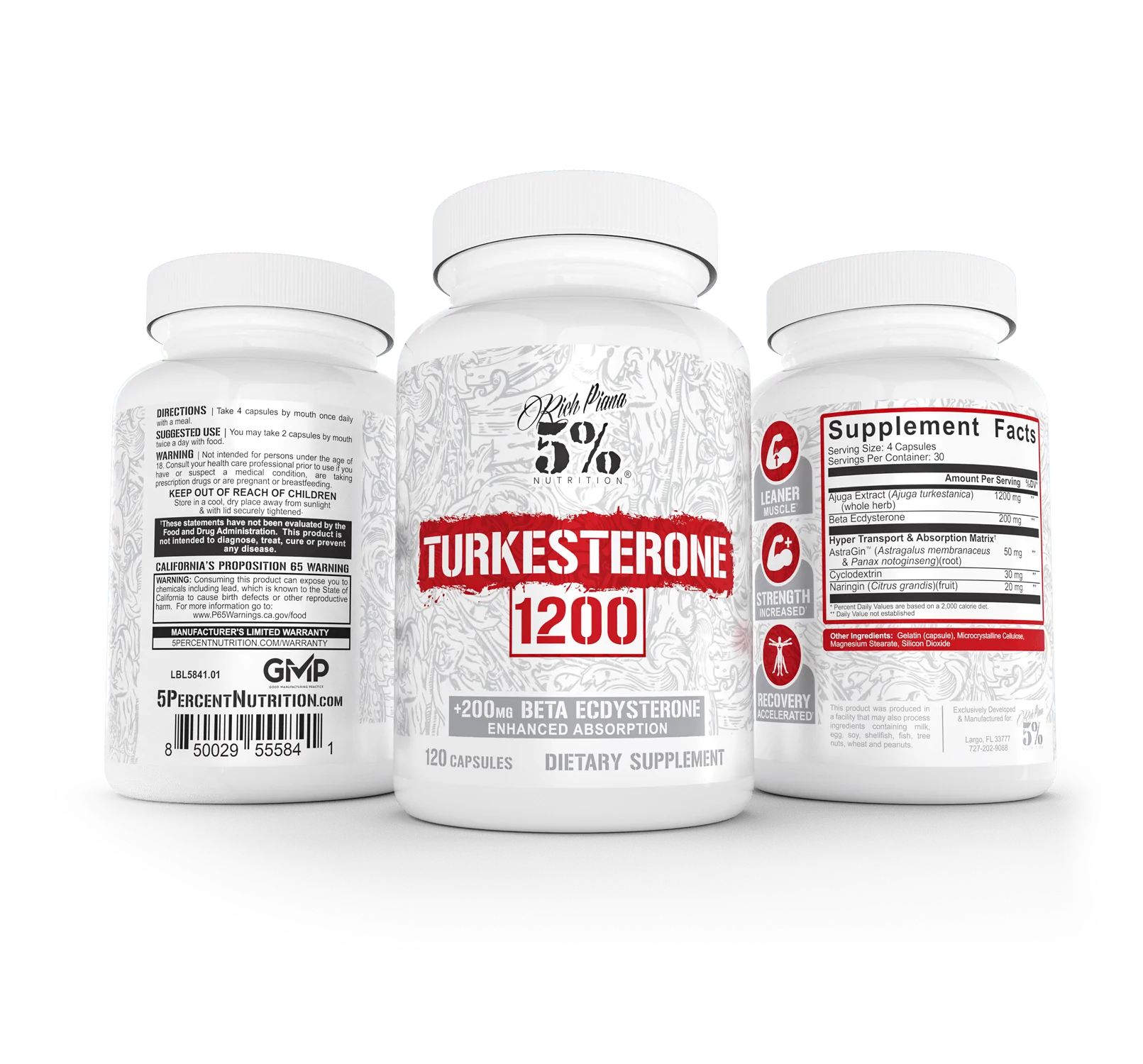 Turk 1200 has beta ecdysterone, making it an even more powerful anabolic combination. Wait till you check out our Hyper Transport & Absorption Matrix, too. Everybody else does one modestly dosed ingredient to aid absorption...not 5% Nutrition! We knock it out of the park, so you get the most absorption possible from this amazing supplement.